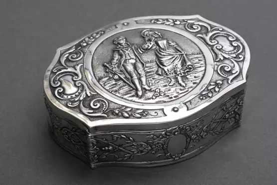 Lot 721 | Large lid box in curved shape with embossed motif …