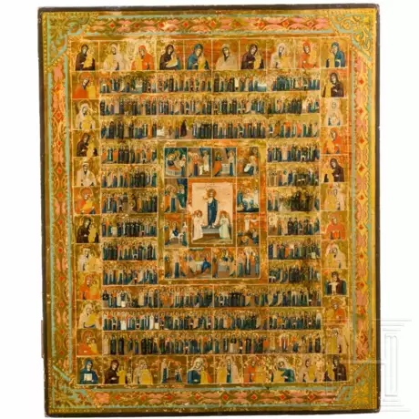 Lot 578 | Große Jahresikone mit 40 Gnadenbildern der Gottesmutter, Russland, um 1900