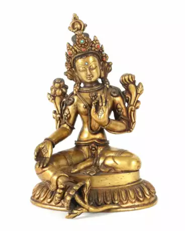 Lot 2693 | Grüne Tara Tibetochinesisch, 19. Jh., Bronze, feuervergoldet, mit Lapi…