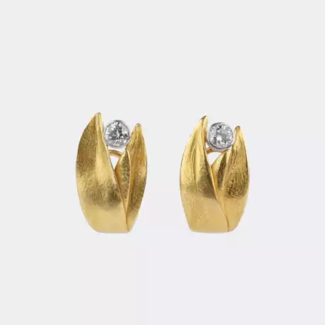 Lot 271 | Hadfried Rinke Goldschmied, Worpswede. Paar Blatt-Ohrringe mit Brillanten.