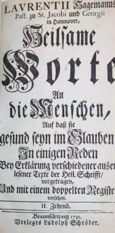 Der Autor war Pastor zu St. Jacobi u. Georgi in Hannover. - Insgesamt gutes Ex. - Provenienz: Adelsbibliothek.