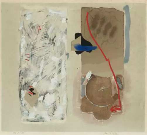 Container. Farblithographie, überarbeitet und Collage. 90/100. Unten rechts in Bleistift signiert. Lichtmass 38x42,5 cm. Gerahmt.