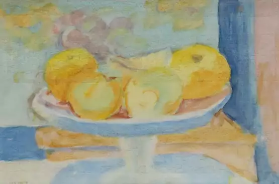 (1899 Mayen - München 1974). Stielschale mit Äpfeln. Mischtechnik wohl auf Lwd. Ca. 20 x 29 cm. Unt. li. sign. Unter Passep. u. Glas gerahmt (nicht ausgerahmt).