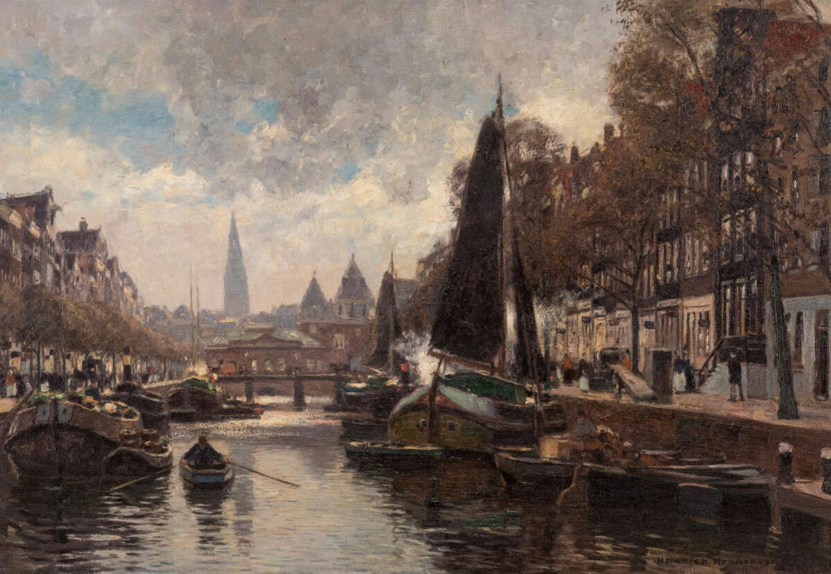 Gracht in Amsterdam, oil on canvas, 69 x 100.5 cm, signed, partly craquelure, partly