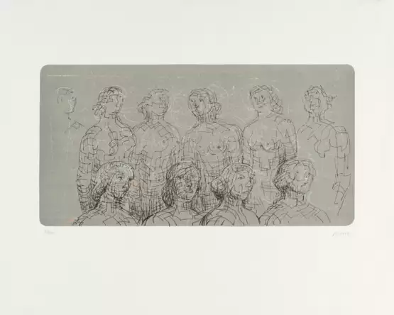 Lot 4462 | Henry Moore. Female figures with grey background