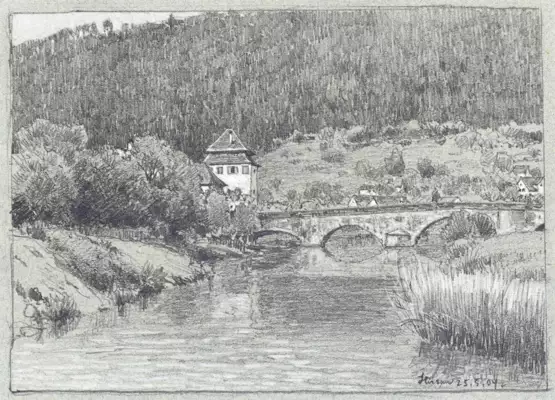Von Ravenstein war Schüler von Gude und Schönleber. M. von Schwind war sein Schwiegervater. Er schloß sich dem Künstlerbund von Karlsruhe an. - Am äußeren Rand minimal gebr.