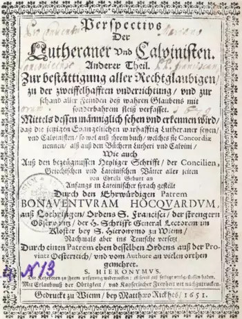 VD17 12:111261Z (ohne das Portr.). Erste deutsche Ausgabe (erstmals 1648-49 in lat. Sprache erschienen). - Vereinzelt gering wurmstichig, Titel mit klösterl. Besitzvermerken u. Stempel, Ebd. berieben u. etwas wurmstichig.