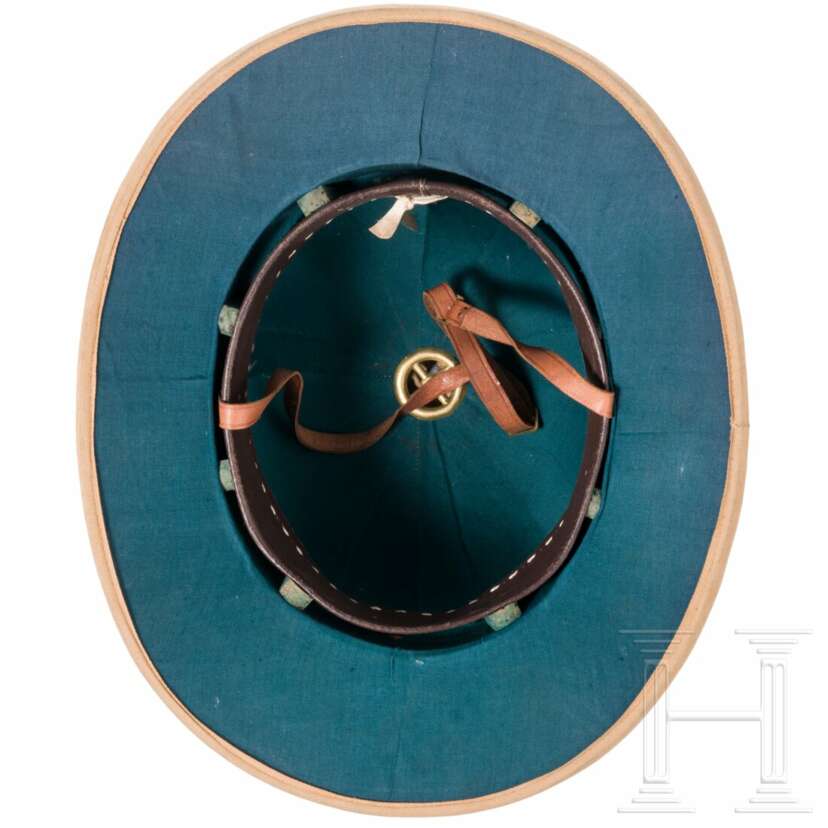 Tropenhelm (Beutehelm), komplett mit Schweißband und Kinnriemen, drei Paar Schulterklappen für einen Ingenieur der Kriegsmarine, Mützenband "Linienschiff Schleswig-Holstein", Länge ca. 120 cm. Des weiteren ca. 123 Fotos: Aufnahmen der Kriegsschiffe, Gefechte, tolle Fotos von U 81, Besuch von A. Hitler, hohe Offiziere, teilweise sind die Auszeichnungen und U-Boot-Mützenabzeichen zu sehen, Soldaten in Tropenbekleidung etc. Oberleutnant (Ing.) Horst Renner diente u.a. auf U 81. Am 06.09.1943 wurde ihm das Deutsche Kreuz in Gold verliehen.