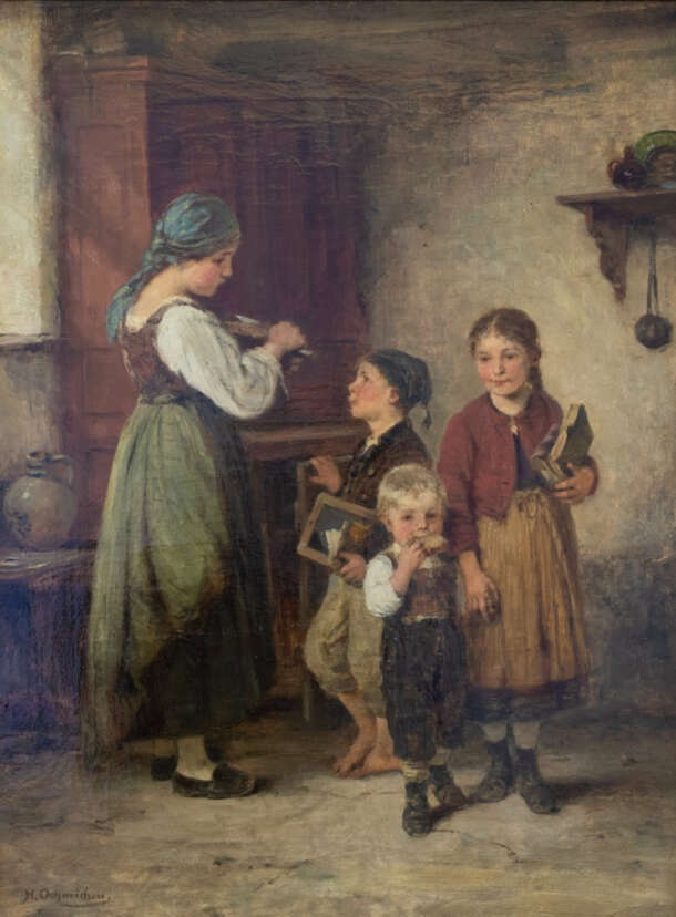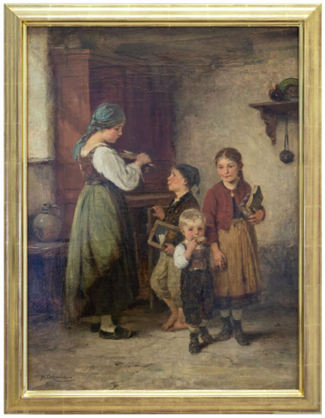 Children's snack, oil on canvas, 80 x 60 cm, signed, framed