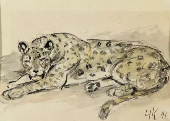 Löwinnen, Tiger u. Jaguare. - Tls. lichtrandig. - ╔Dabei: A.Richard╗ (20. Jh.). Löwen, tls. in Lauerstellung. Kohlezeichnung auf braunem Karton. Blgr. 27,5 x 38 cm. - Wenige Randeinrisse. Zus. 5 Bl.