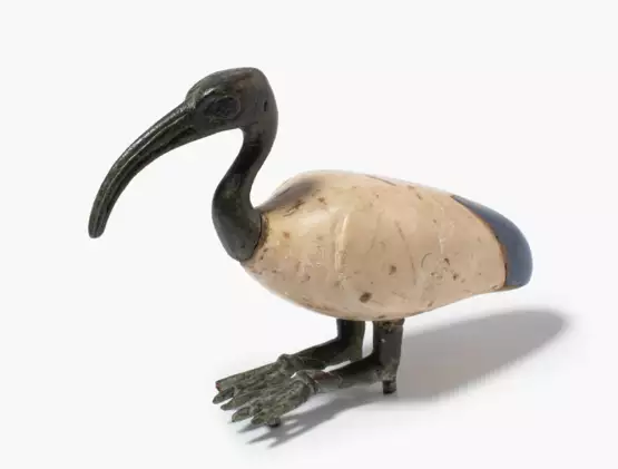 Ägypten. Bronze, Alabaster und Lapislazuli. Kopf und Füsse antik, Körper modern ergänzt. L 14 cm.