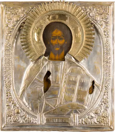 Lot 975 | AN ICON SHOWING CHRIST PANTOKRATOR WITH OKLAD