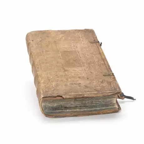Complete titel 'Institutiones, Auszug und Anzaigung etlicher geschriebenen kayserlichen und deß H. Romischen Reichs Rechte', 1581 (M. D. LXXXI.), consisting of the four books of the 'Institutiones', with five appended books 'I. Deß ordentlichen Gerichtlichen Prozeß.', 'II. Der leben Recht Verdeutschung/samt einem Lateynischen Excerpe.', 'III. Der Peynlichen halb Gerichts Ordnung., 'IV. Der Summae Rolandini von allerhandt Contracten und Testamenten.', 'V. Deß Socini Tractas schier aller Regeln gemeyner Recht.', printed at Ingolstadt in the Weissenhornische Druckerei, by Wolffgang Eder, 23 x 34 x 8 cm book size, with signs of age and wear, slight water damage, partial foxing