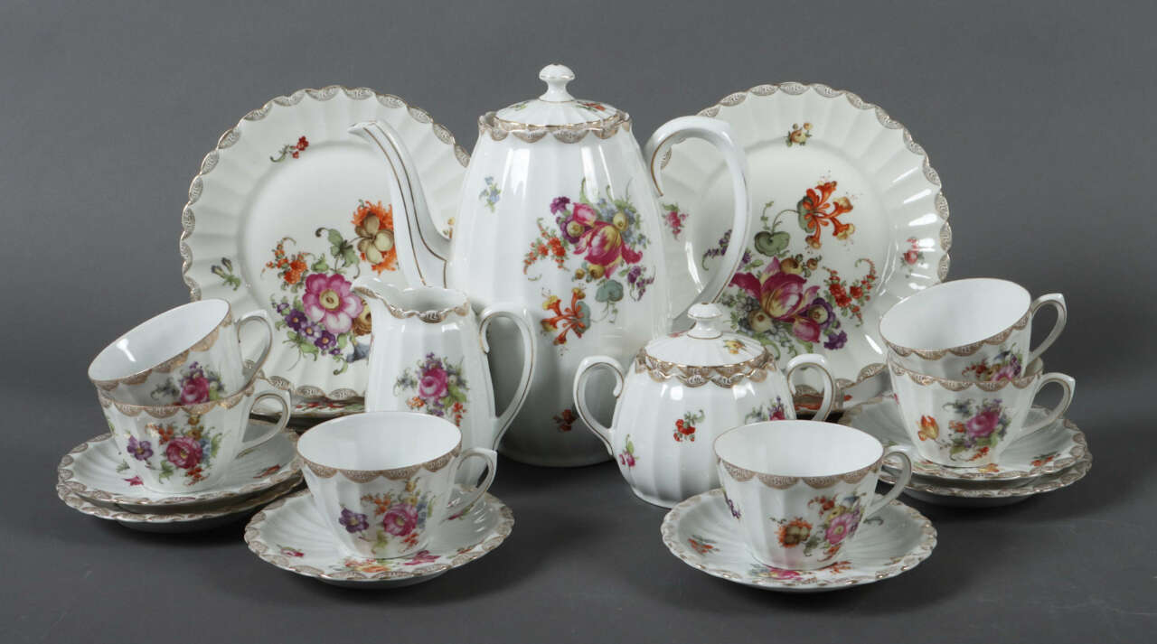 Lot 1056 | Kaffeeservice mit Blumenmalerei für 6 Personen Wür…