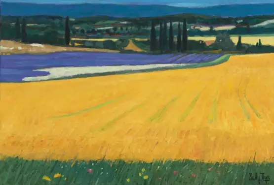 Haute Provence. 1990. Öl auf Leinwand. Unten rechts signiert. Verso auf Etikett betitelt, datiert und bezeichnet. 38x55,5 cm. Gerahmt.