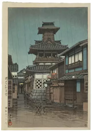 Woodblock print, signed Hasui, published by Watanabe Shozaburo, dated 1947