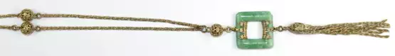 Kette mit Jade-Abhang, um 1920, vergoldet, Jade-Ecke best., Kordelketten-L. 80 cm