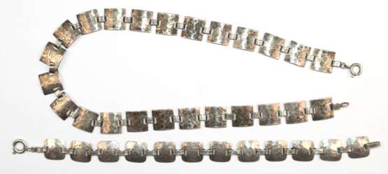 Lot 893 | Kette und Armband, 800er Silber, 1920er Jahre, quadratische Glieder mit Hammerschlagdekor, Ges.-Gew. 28,2 g, L. 20,5 cm und 37 cm