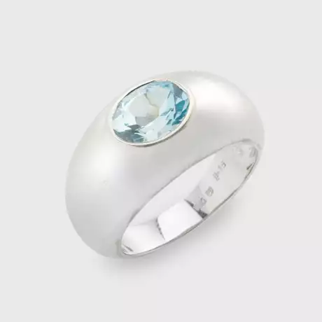 Weißgold, gest. 750. Zentral besetzt mit einem himmelblauen Aquamarin von ca. 2,15 ct. im Ovalschliff. Gew. ca. 9,54 g.