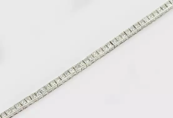 Weißgold, gest. 750. Linear besetzt mit Diamanten im Princesscut von zus. ca. 6,50 ct (H-I/si2). L. 18,5 cm. Gew. ca. 19,14 g.