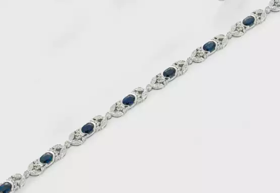 Weißgold, gest. 585. Schauseitig besetzt mit tintenblauen Saphiren von zus. ca. 4,50 ct., akzentuiert durch Diamanten von zus. ca. 1,20 ct.; L. ca. 19,5 cm. Gew. ca. 19,05 g.