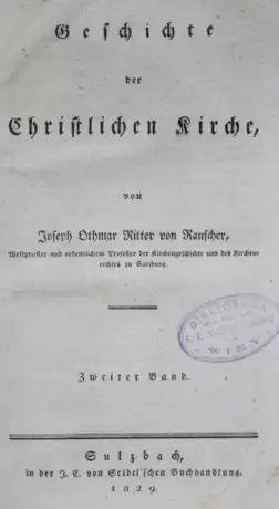 ╔Rauscher,J.╗ O. v., Geschichte der Christlichen Kirche. 2 Bände. Sulzbach, J. E. v. Seidel 1829. 8°. XII., 436 S.; VIII., 440 S., Hldrbde. d. Zt. mit Rsch. u. Rvg. ╔Silbernagl,I.╗ Die kirchenpolitischen und religiösen Zustände im neunzehnten Jahrhundert. Landshut, Ph. Krüll 1901.Gr. 8°. 4 Bll., 467 S., Hldr. d. Zt. mit Rtit. u. Rvg. - I) Erste Ausgabe.- I: Römer-Zeit.- II: Baioaren-Zeit. St. Ruperts-Zeitalter-Frage.- III: Baioaren-Zeit. Christianisirung Altbaioariens.- IV: Slaven-Zeit.-Titel gestempelt, etw. gebräunt od. stockfleckig, Ebde. etw. berieben u. bestoßen. - ╔Dabei: Fünf Werke.╗ Tappert Dionys-Maria, Der heilige Bruno, Stifter des Karthäuser-Ordens, in seinem Leben und Wirken. Luxemburg, Brück 1872. 8°. 526 S., 1 Bl., mit 1 gest. Porträt-Frontispiz, Hldr. d. Zt. mit Rtit. - ╔Lechner P.╗ Leben des heiligen Benedict Ordensstifters und ersten Abtes auf Monte Cassino. Regensburg, 1857. 8°. 317 S., 1 Bl., mit Stahlst.-Porträt als Frontispiz, Hldr. d. Zt. mit Rtit. - ╔(Stapf J. A.),╗ Der heilige Vinzentius von Paul... 2 Bde. Brixen, Weger 1834. 8°. 3 Bll., 412 S., 8 Bll.; 1 Bl., 362 S., 6 Bll., Hldr. d. Zt. mit Rsch. - ╔Ratisbonne Th. M.╗ Geschichte des heilige Bernhard. ...2 Tle. in 1 Band. Innsbruck, Rauch 1844. 8°. LXVI, 313 S., 2 Bll.; 1 Bl., 342 S., 2 Bll., mit 1 lithogr. Titelporträt, Hldr. d. Zt. mit Rtit. - ╔Sulzbeck Fr. X.╗ Leben des heiligen Wolfgang,... Bisthums Regensburg. Regensburg, 1844, 8°. 205 S., 1 Bl., Hlwd. d. Zt. mit Rtit. I. War der Begründer des Kartäuserordens. - Titel u. Vorsatz gestempelt, etw. braunfleckig, Ebd. berieben. - Hausfriz,G.L. De Caesare designato successore imperii antiqui commentarius ad illustrandam historiam Augustam. Nürnberg, J. Stein 1737. 8 Bll., 158 S., 1 Bl., mit gest. Titelvignette, Hldr. d. Zt. - VD18 15065499.- Erste Ausgabe. - Tls. etw. fleckig, Ebd. tls. berieben. - Drei Werke. (Languet de Gergy Jean Joseph), Vita della beata Margherita Maria Alacoque, religiosa professa dell'Ordine della Visitazione di Santa Maria nel monastero di Paray-le-Monial. Rom, Salviucci 1864. 4°. 4 Bll., 252 S., 1 Bl., mit lithogr. Portrait als Frontispiz, Ldr. d. Zt. mit Rtit. Goldbordüre. - ╔(Bottiglia,L.).╗ Erbauliche Lebensgeschichte der Dienerinn Gottes Marie Clotilde von Frankreich, Königinn von Sardinien. Augsburg, Doll 1819. 8°. 3 Bll. 168 S. mit gest. Titelporträt, Pbd. d. Zt. mit Rsch. - ╔Teresa de Jesús╗, Leben der heiligen Teresa von Jesus, von ihr selbst geschrieben. ...aus dem Spanischen übersetzt von Ida Gräfin Hahn- Hahn. Mainz, Kirchheim 1867. 8°. LVI, 463 S., mit 1 gest. Portraittafel, Hlwd. d. Zt. mit Rtit. I) Erste italienische Ausgabe. Erschienen anläßlich ihrer Seligsprechung am 18. September 1864 von Papst Pius IX. - Tls. leicht braunfleckig, Vorsatz mit mehrz. handschr. Widmung v. 1865, Ebd. etw. berieben. - Zus. 12 Werke in 16 Bänden.