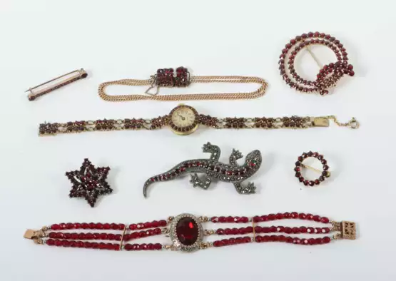 Lot 1389 | Konvolut Rubinschmuck 20. Jhr., mehrere Teile, Silber und unedel, tlw.…