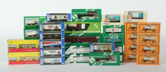 Lot 198 | Konvolut Wagen Spur H0, Sachsenmodelle: 2 x Doppelwagen BR 50 50, beig…