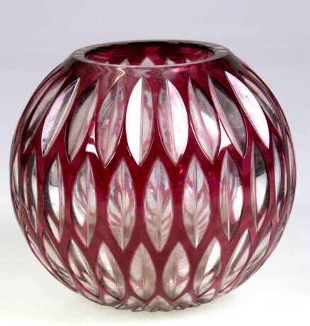Lot 583 | Kristallvase, Kugelform, rot überfangen und handgeschliffen, H. 14 cm