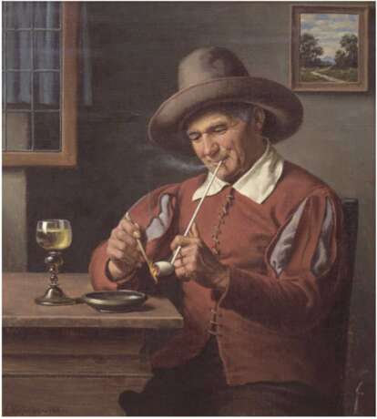 Lot 172 | Kuhlmann-Reher, Emil (1886 Reher- 1957 München) "Mann in Tracht bei einem Glas Wein sitzend und sich eine Tonpfeife anzündend", Öl/Lw., signiert u.l., 40x35 cm, Rahmen