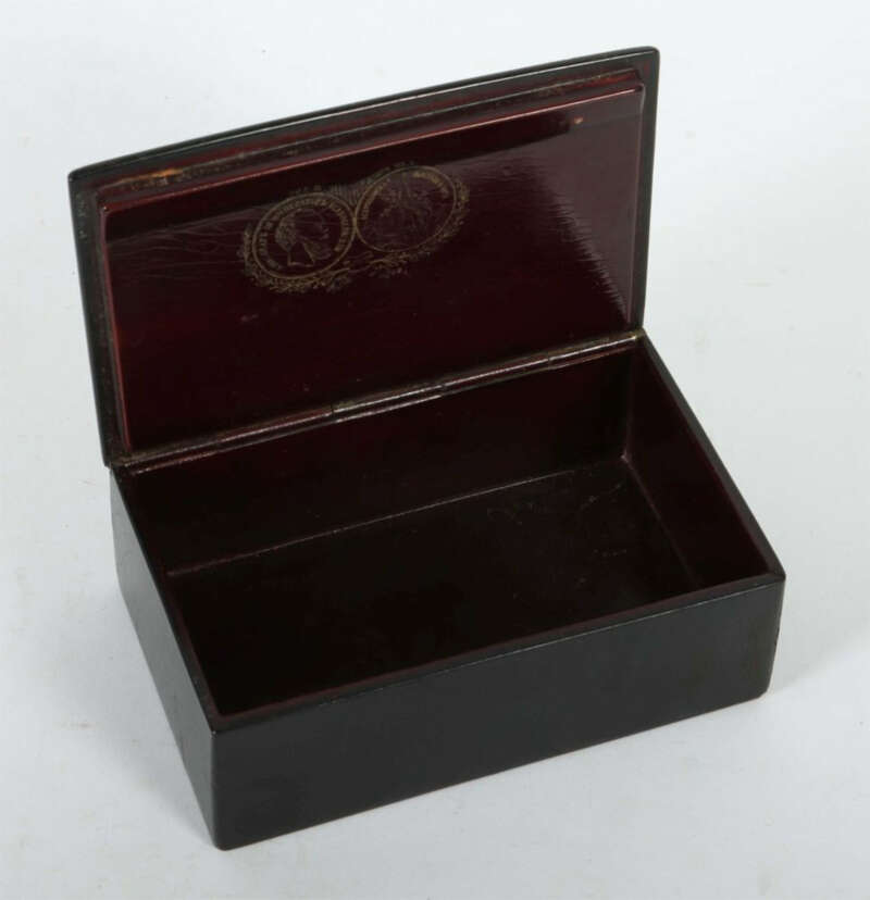 Lot 535 | Lackdose Russland, dat. 1882, querrechteckige Form, Scharnierdeckel mi…