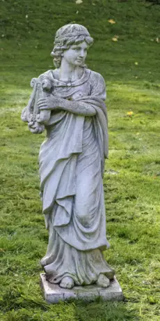 A 20th century German cast stone garden sculpture of a woman with a lyre.