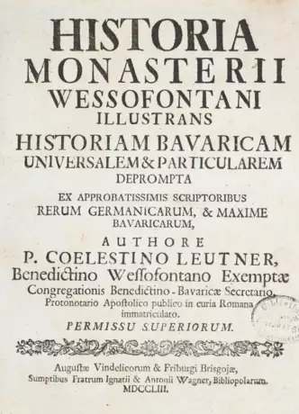 Lentner 11024. Baader I, 314. Lindner 1, 178. - Hauptwerk des Wessobrunner Benediktinermönches Leuthner. - Etw. gebräunt od. braunfleckig, Ebd. leicht berieben. Aus der Bibliothek v. Leonhard Buchberger, Bendiktiner in Tegernsee (hs. Eintrag am Vorsatz und kl. Bibliotheksstempel am Titel).