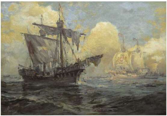 Lot 167 | Marinemaler des 19./20. Jh. "Nach der Seeschlacht- Segelschiffe auf hoher See", Öl/Lw., unleserlich sign. u.l., 63x90 cm, Rahmen