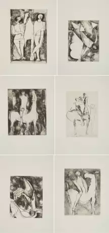 Technique: Each: Etching on laid paper. In the original portfolio.