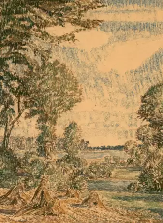 Lower Rhine landscape, coloured chalk drawing and pencil on paper, 44 x 32 cm sight dimensions, signed, paper browned
