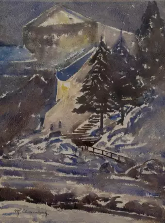 Winter landscape, watercolour on paper, 39 x 29 cm, signed, mounted