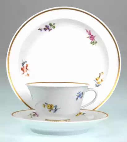 Lot 440 | Meißen-Gedeck, Streublume mit Goldrändern, Schwertermarke 1924-34, 1. Wahl