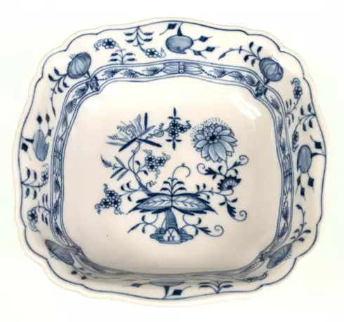 Lot 450 | Meißen-Schale, quadratisch, Zwiebelmuster, blaue Schwertermarke mit 2 Schleifstrichen, 6x18,7x18,7 cm
