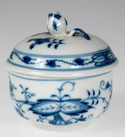 Lot 485 | Meissen-Zuckerdose, Zwiebelmuster, 2 Schleifstriche, Dm. 8,7 cm