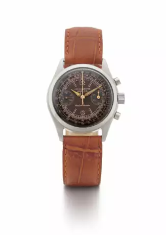 Description: 3-hand chronograph with 30-minute counter at '3' o'clock and off-centre seconds at '9'