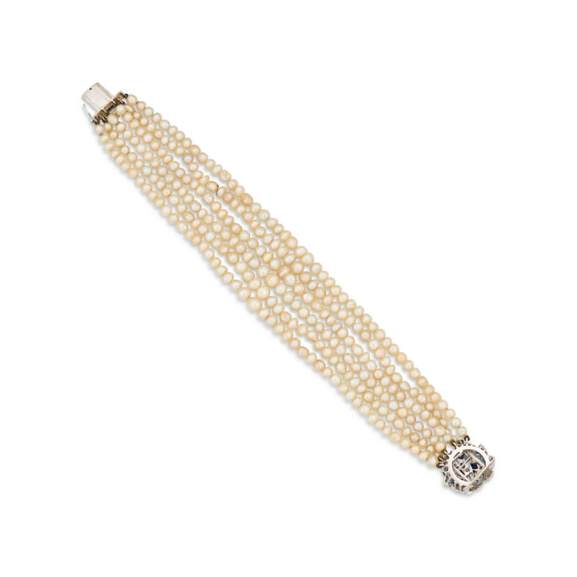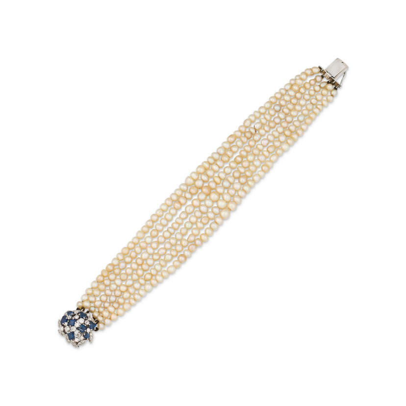 Lot 19 | NATURAL PEARL, SAPPHIRE AND DIAMOND BRACELET