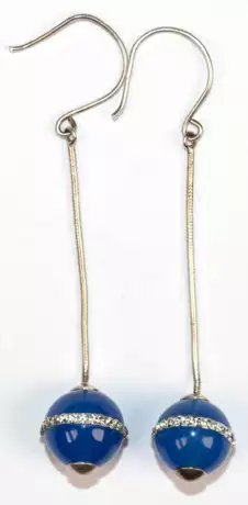 Lot 927 | Ohrhänger, 925er Silber, an Schlangenkettchen montierte blaue Achatkugeln mit einem Ring aus Zirkonia im Zentrum der Kugel, Länge ca. 5,5 cm