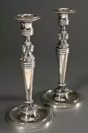 Lot 661  | Pair of French Empire candlesticks with sculptural…