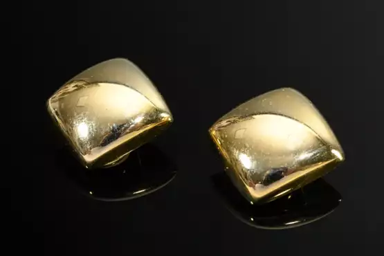 Lot 430 | Pair of cushion-shaped 585 yellow gold ear clips i…