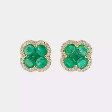 Lot 219 | Paar Smaragd Brillant Ohrringe 'Kleeblatt'.