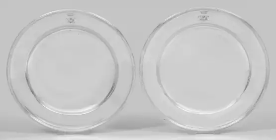 A pair of Vienna silver plates by Alois Würth (master since 1804). Monogrammed. Standard mark 13 lot, dated assay and maker´s mark.