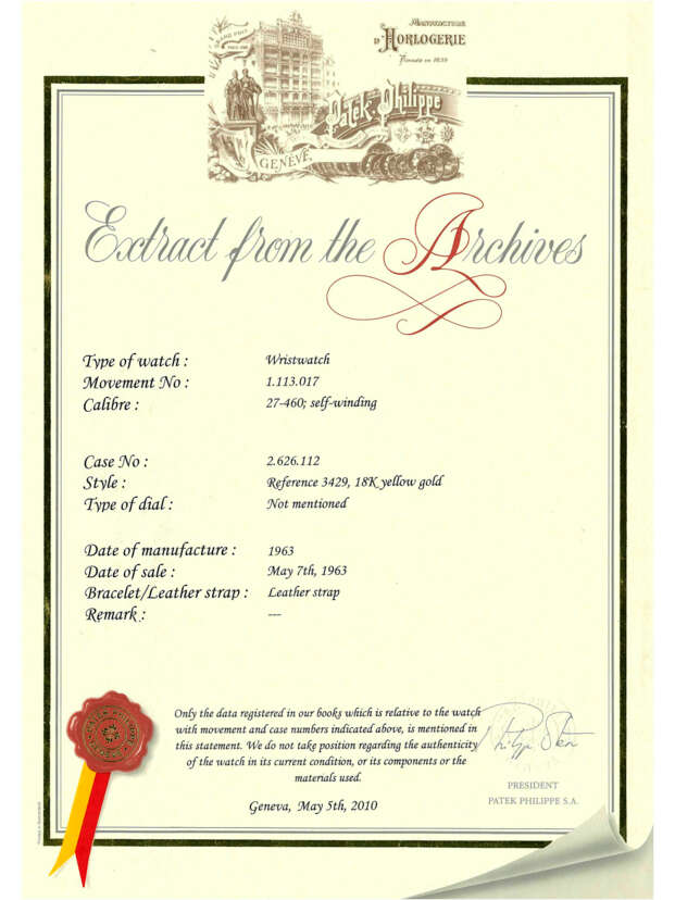 REF. 3429, MOVEMENT NO. 1'113'017, CASE NO. 2'626'112, MANUFACTURED IN 1963