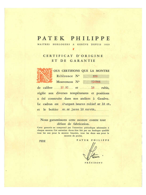 With: Undated Patek Philippe Certificat d'Origine et de Garantie, Patek Philippe Japan Service Center Registered Card for Guarantee from 1966, presentation box and outer packaging