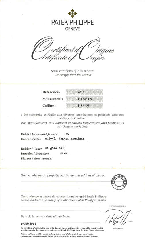 WITH: Undated Certificate of Origin, setting pin, presentation box and outer packaging